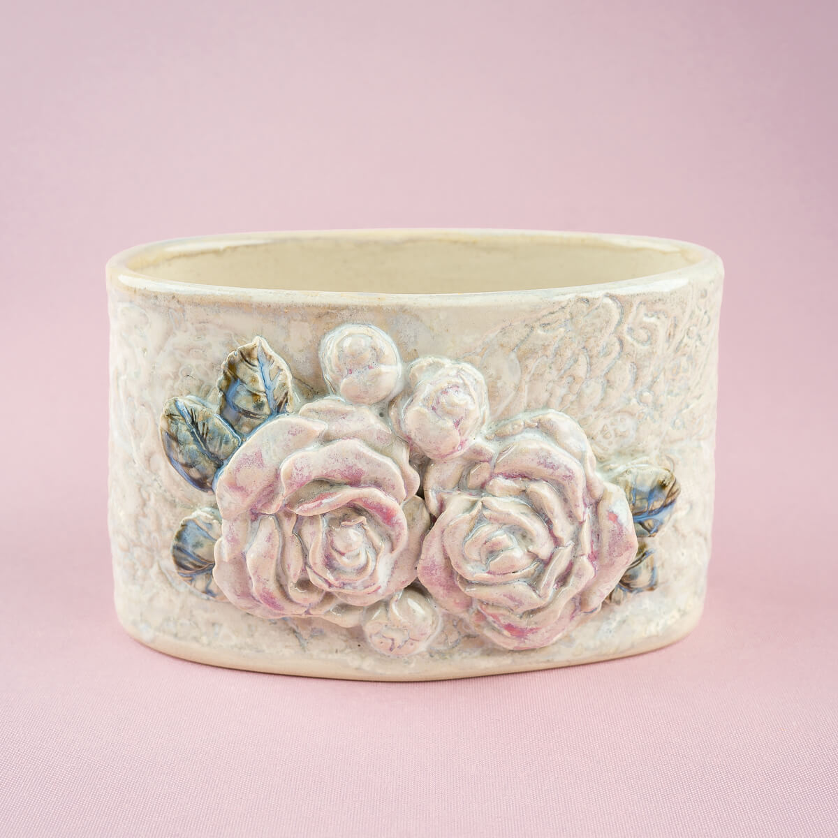 Õrn ja romantiline hapukoore tops, valminud Eestis käsitööna Liivika Asumaa poolt. Tarbekeraamika