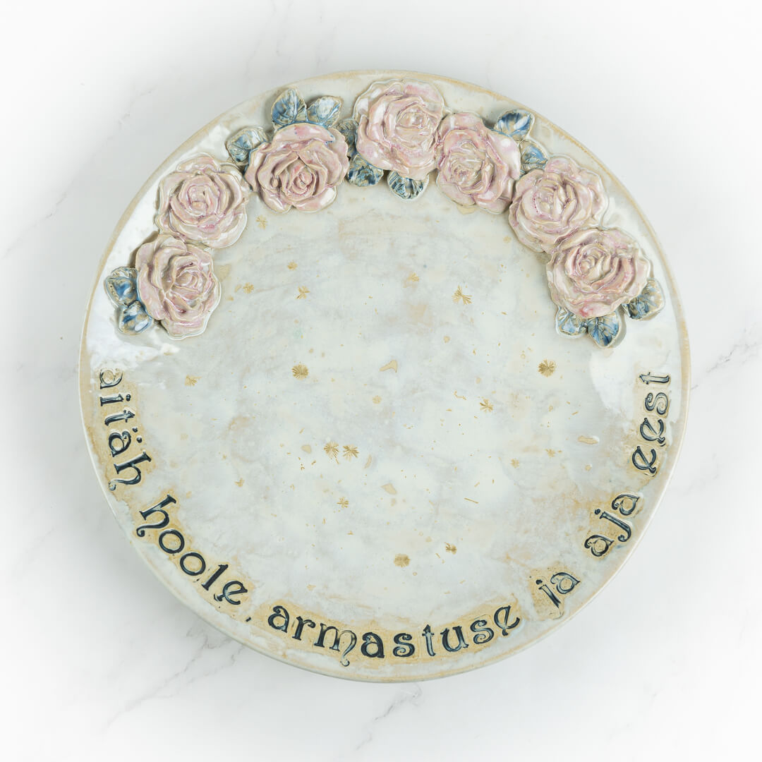 Õrn ja romantiline vaagen, valminud Eestis käsitööna Liivika Asumaa poolt. Tarbekeraamika sarjast "Roos".