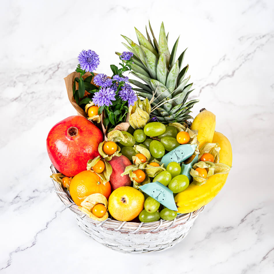 Korv täis värskeid ja hooajalisi puuvilju, mille meie floristid pakendavad kauniks kingituseks. Korvist leiab lisaks ka Pliit ja Plika käsitöökompvekke ja lilleilu. Sobib kinkimiseks tänutäheks või mistahes tähtpäevaks.