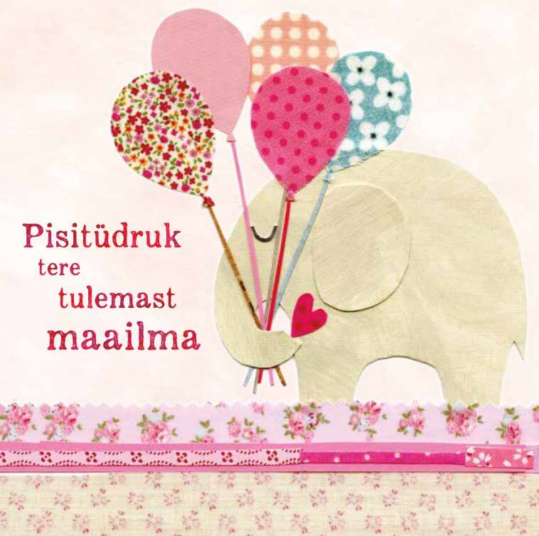 Roosades toonides kaart, õnnitluste edastamiseks pisitütre sünni puhul.