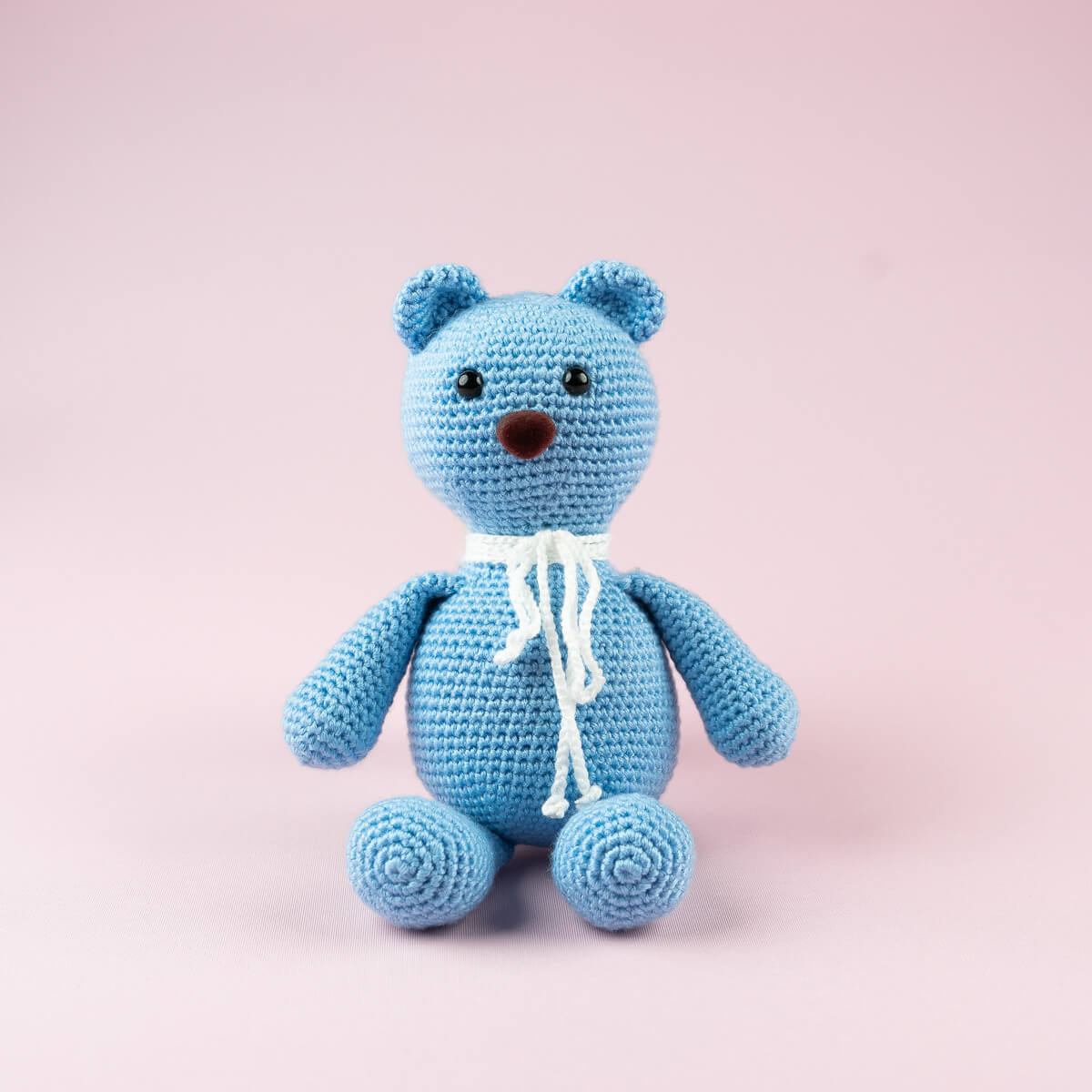 Sinine käsitöö karu on valminud käsitööna Eestis.