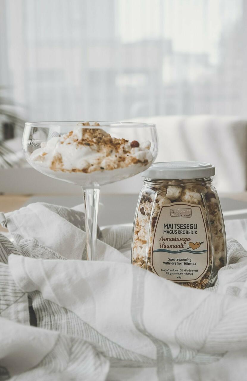 Armas kingiidee - Armastusega Hiiumaalt magus krõbedik. Armastus on magus ja koos Hiiumaa kuldse astelpaju ja punava pohlaga võib murda südameid. Puista jäätisele või pannkoogile, kaunista kooke ja torte!