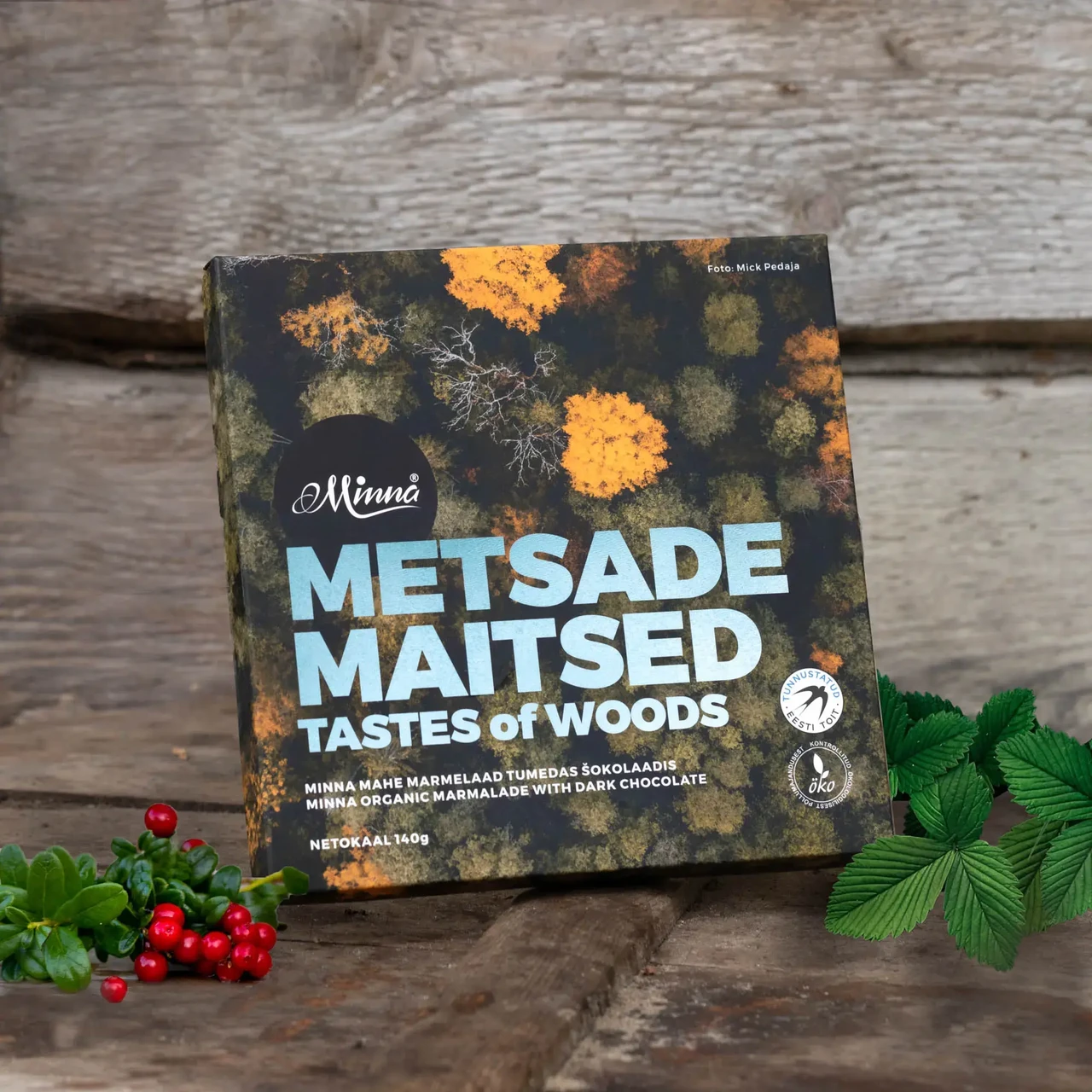 Metsade maitsed kaunis pakendis - mahe marmelaad tumedas šokolaadis. Käsitsi valmistatud marmelaadist kommikesse mahub kuhjaga õrna hoolimist ning hulganisti metsiku looduse vabadust.