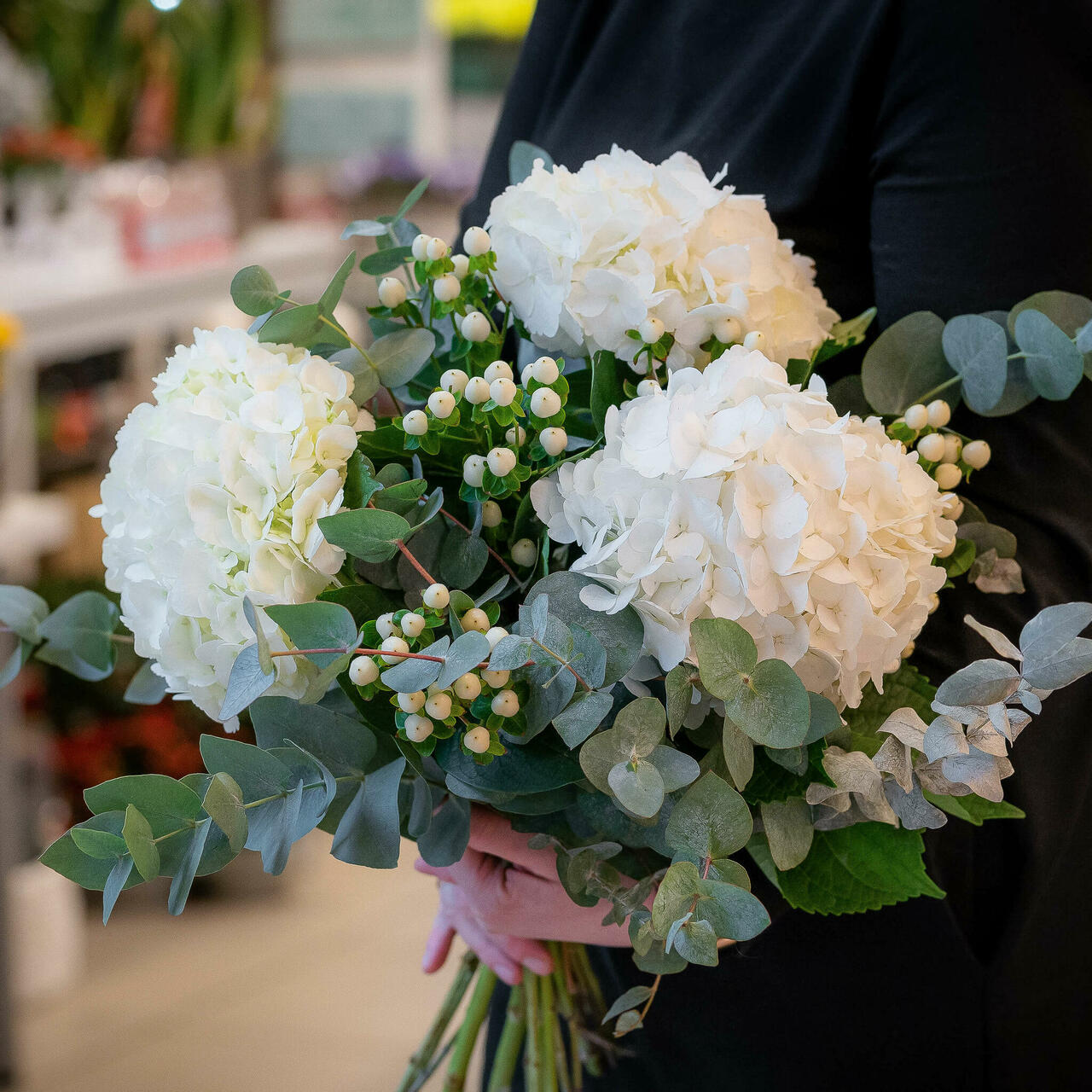 Loome Sulle imekaunitest hortensiatest ja rohelisest vahematerjalist lopsaka lillekimbu.