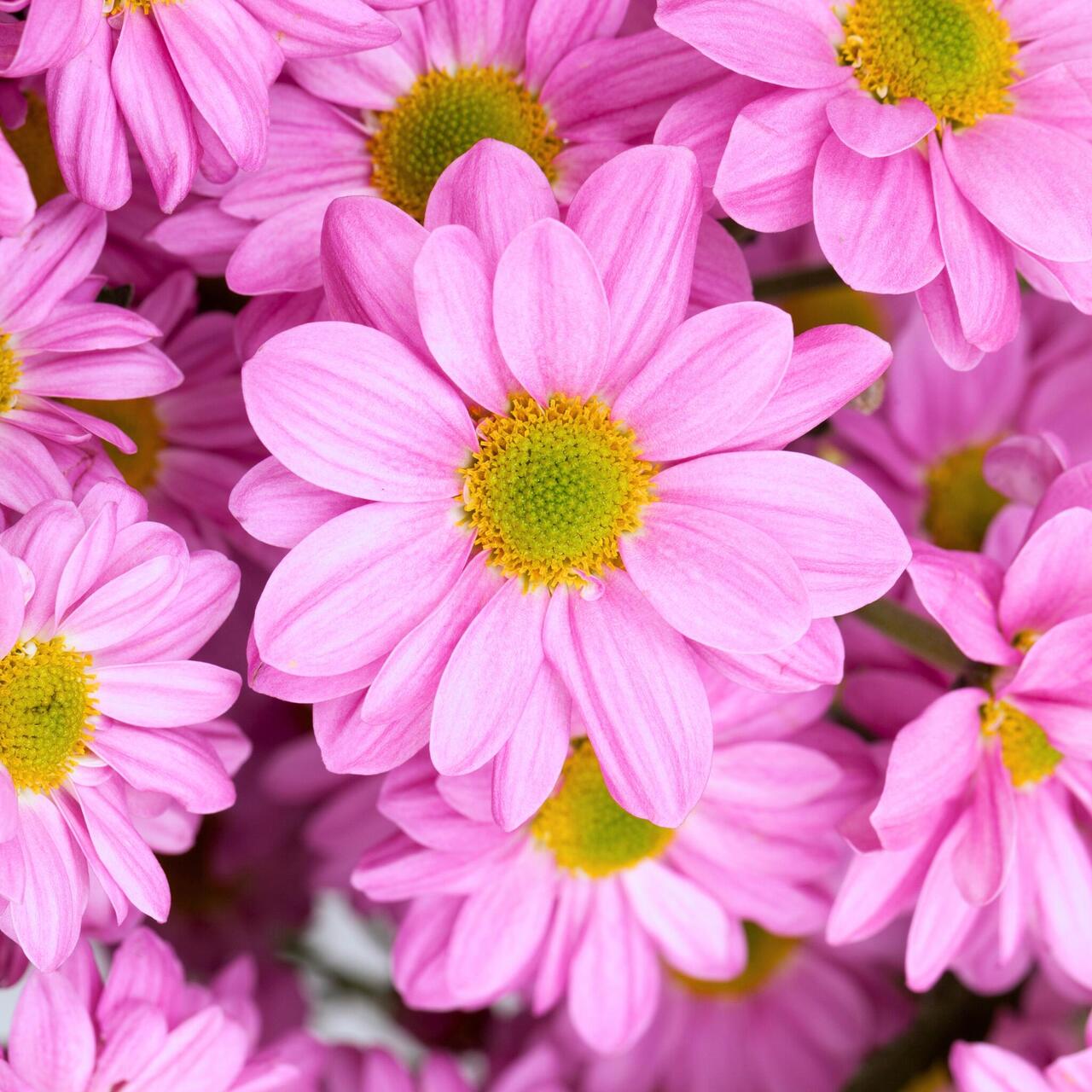 Meie valikus leidub valgeid ja roosasid krüsanteemi oksi.