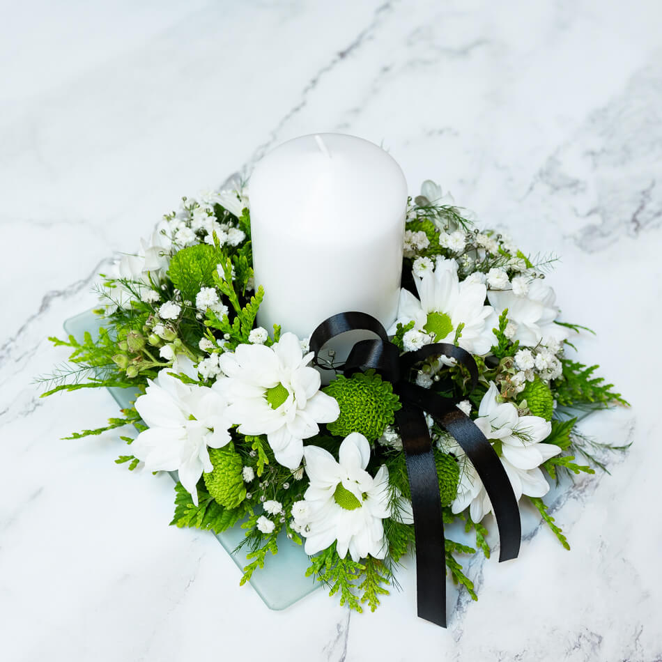 Leinaseade lauale koos küünlaga alusel.