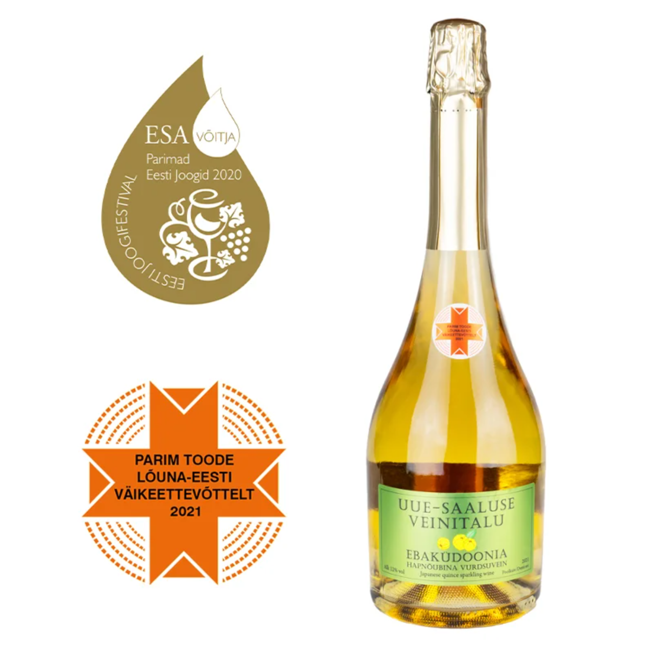 Uue-Saaluse Veinitalu auhinnatud poolkuiv ebaküdoonia vahuvein, valminud Lõuna-Eestis kasvanud ebaküdooniatest. Imeline kodumaine kingiidee.