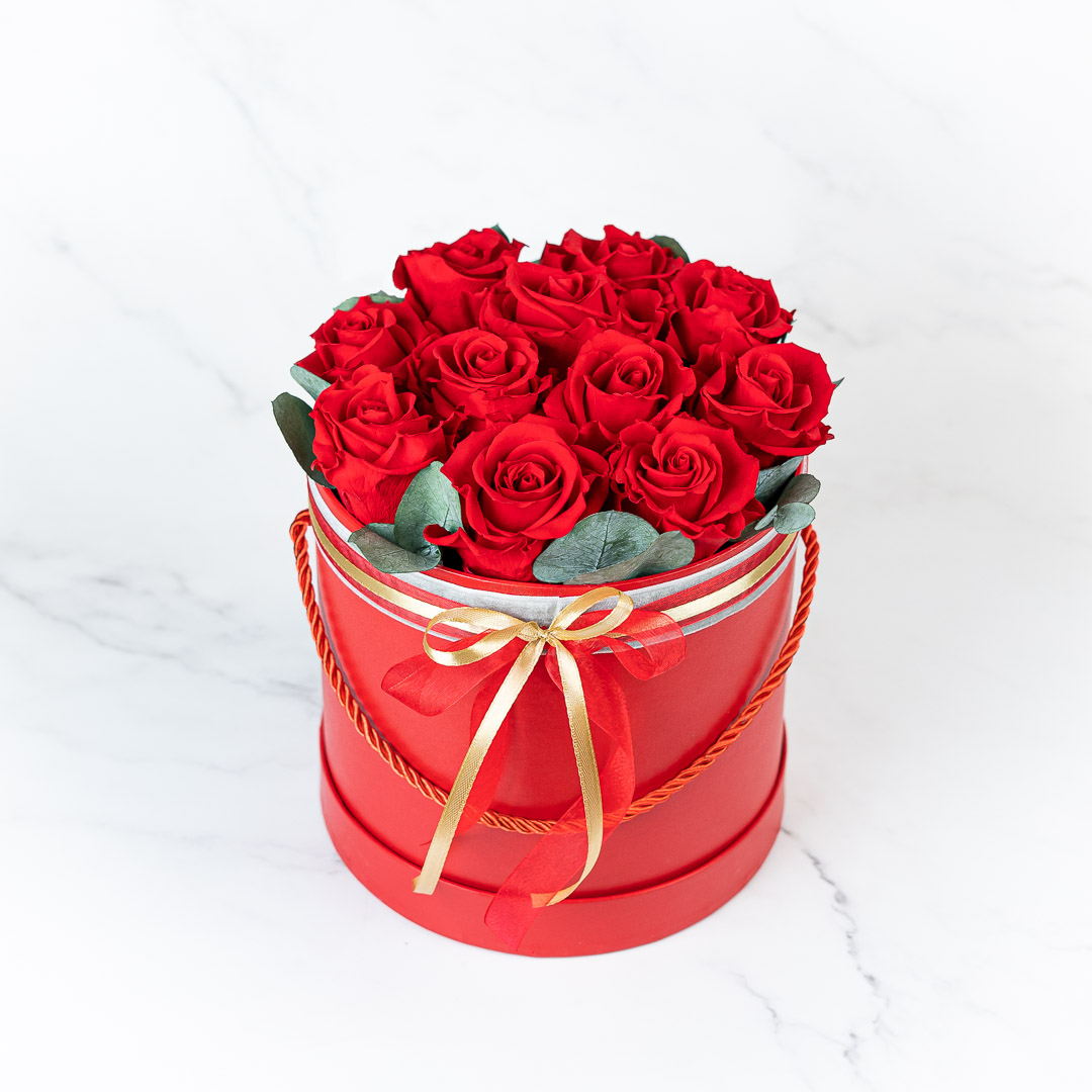 Kaunis punane seade koosneb 11 uinuvast roosist ja kauasäilivast eukalüptist. Uinuvad roosid on ehtsad roosid, mis säilivad vähemalt 1 aasta.