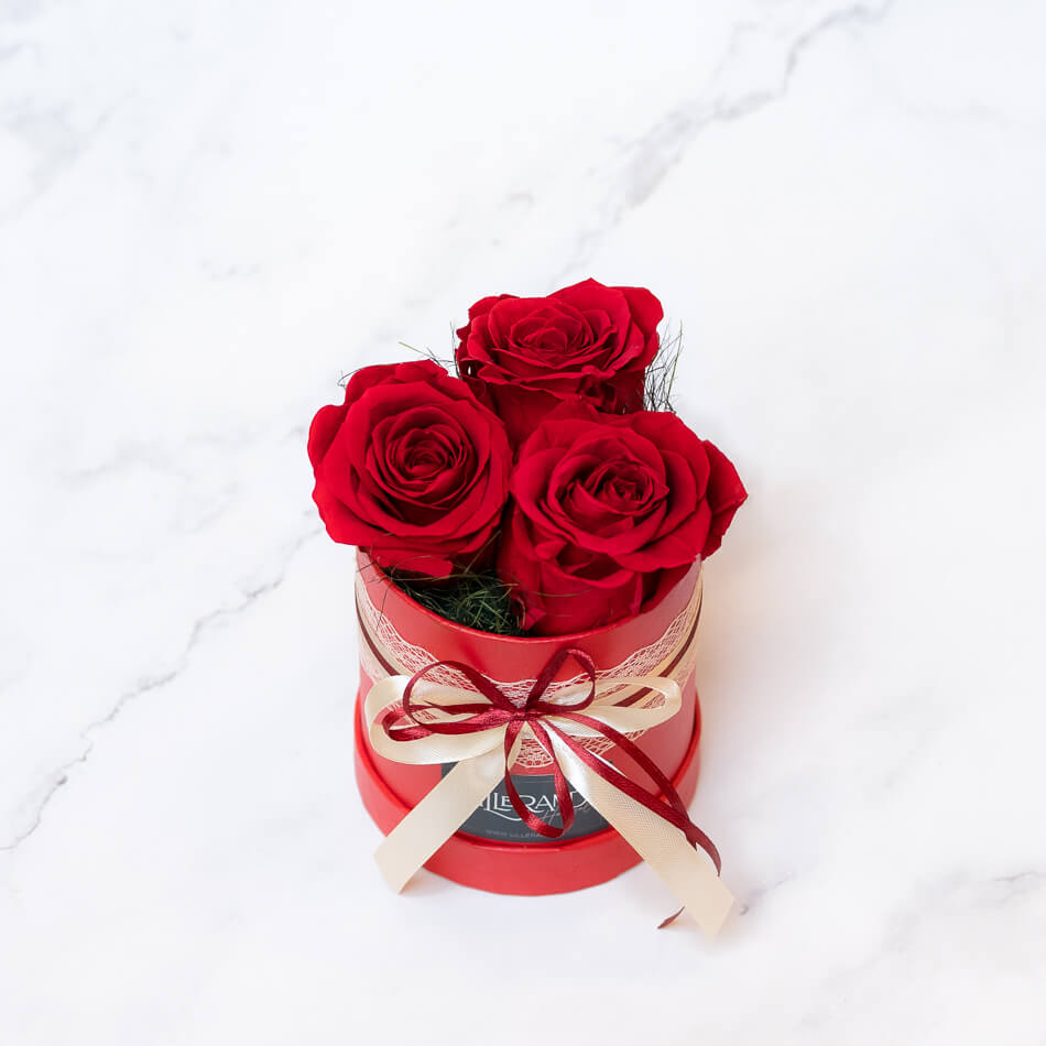 Kaunis seade koosneb 3 uinuvast punasest roosist. Uinuvad roosid on ehtsad roosid, mis säilivad vähemalt 1 aasta.